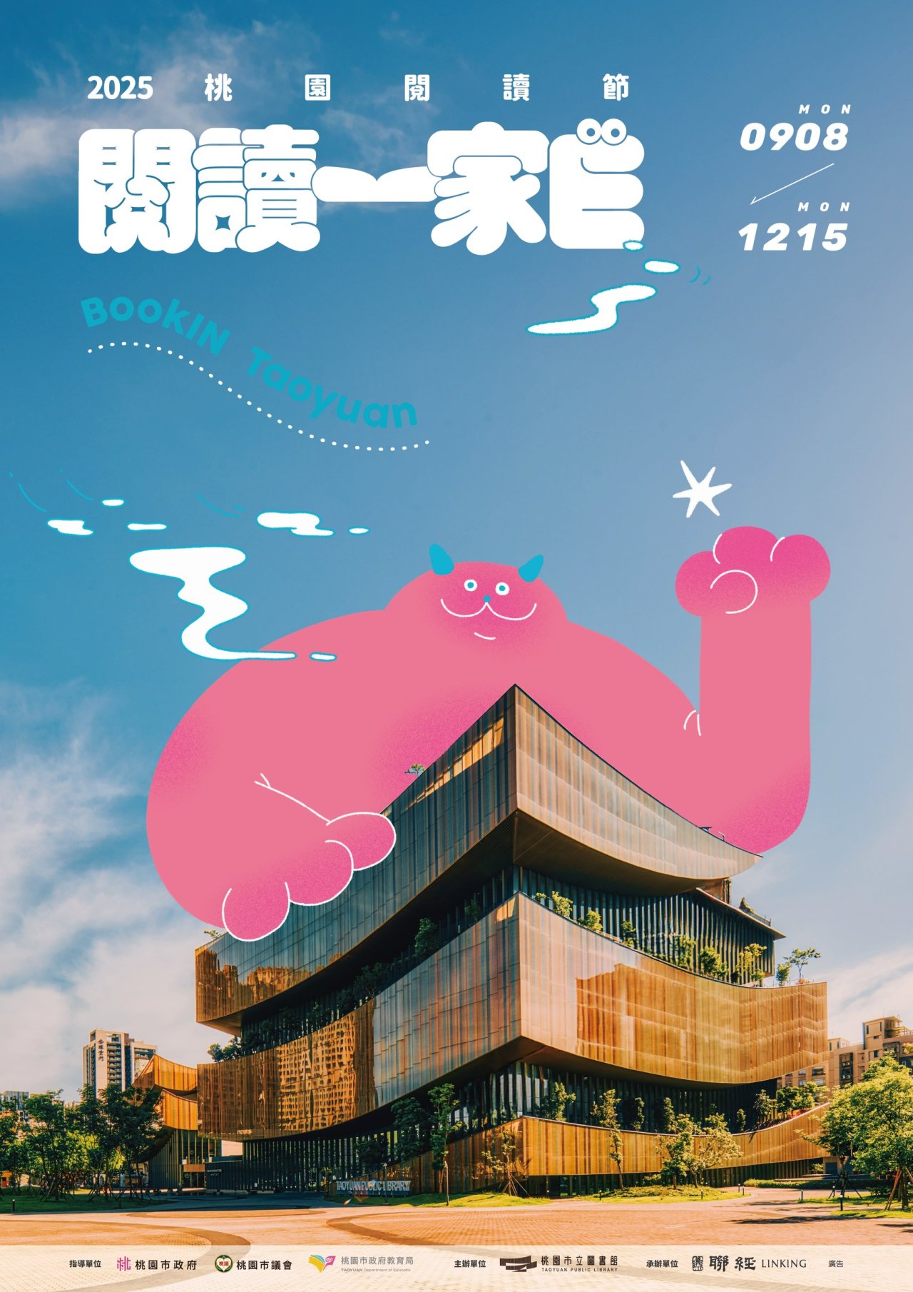 一、今年度桃園閱讀節主題「BookIN Taoyuan 閱讀一家E」, 以科技為主軸,邀請不管是大朋友、小朋友,親子都能E起 走入由閱讀構成的擴增實境,在目不暇接的科技世界中尋 找並享受閱讀帶來的樂趣,透過多元的閱讀回應這個時代 的變化,更讓2025桃園閱讀節為所有讀者預約一份屬於新 世代的閱讀指南。 二、系列活動: (一)BookIN 預約閱讀新世代 特色閱讀角:9/8(一)~12/15 (一)。 (二)BookIN 一家E起來閱讀 好禮抽獎等你來:9/8(一)~12 /15(一)。 (三)2024年度好書分享會:10/18(六)14:00-16:00瑯嬛書屋。 (四)「BookIN一年的好書能量』──2025桃園年度好書公布 暨讀書分享會:12/14(日)14:00-16:00總館711會議 室。 (五)不思議夜宿圖書館:小小圖書館員守則: 1、龍潭分館:11/15(六)~11/16 (日)。 2、總館:11/29(六)~11/30 (日)。 (六)閱讀三週年暨開館慶祝活動×草地閱讀周年慶:12/14 (日)13:00-19:00總館正門生命樹廣場。 三、2025桃園閱讀節官網:https://www.typl.gov.tw/zh-tw /Activity/Content/8690。 四、檢附活動海報電子檔,歡迎於各單位官網或社群媒體宣傳 轉 發, 亦可自行印製張貼宣傳,至紉公誼。